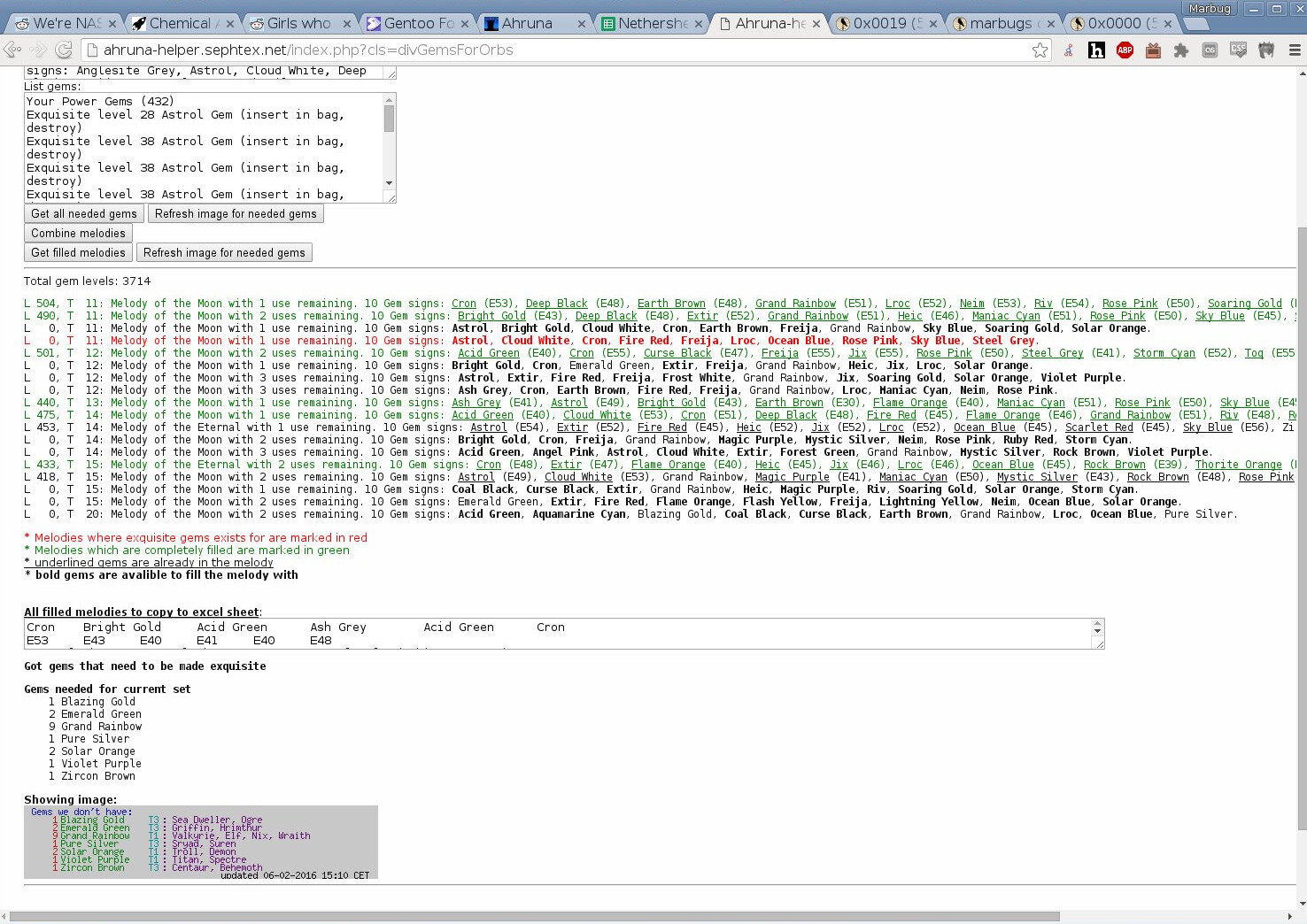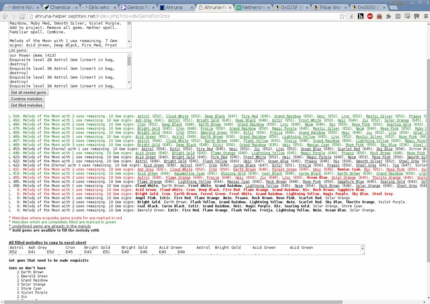 Without this tool, people in our alliance could spend hours searching for the best combination for things called melodies. It included searching gems which needed to be made exquisite, or finding the melody with the nearest needed level. It was really time consuming, and to make everything a understandable, for those who don't know this (part of the) game, I'll explain the gem-melody thing: