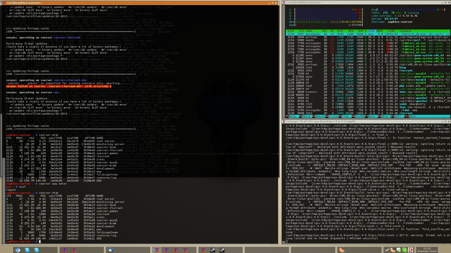 It ran a few KVM's guests and multiple linux-vservers to containerize my workload.
