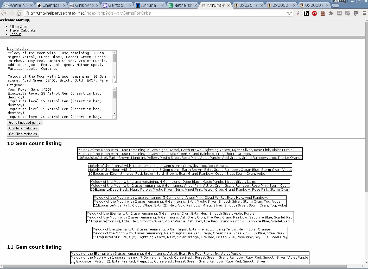 Without this tool, people in our alliance could spend hours searching for the best combination for things called melodies. It included searching gems which needed to be made exquisite, or finding the melody with the nearest needed level. It was really time consuming, and to make everything a understandable, for those who don't know this (part of the) game, I'll explain the gem-melody thing: